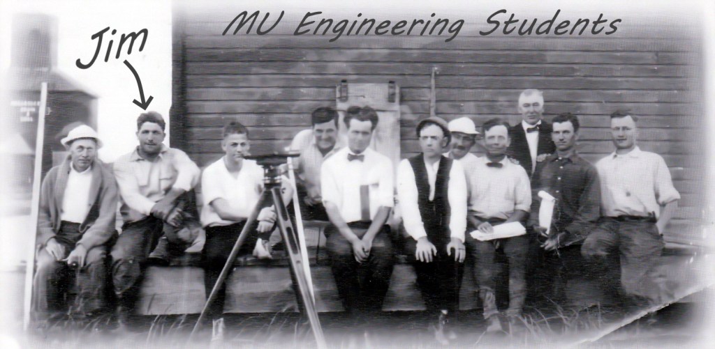 In 1911, Jim Gallagher enrolled at the University of Missouri. He was certainly the first of his family to attend college. He majored in civil engineering, and got his degree in 1914.