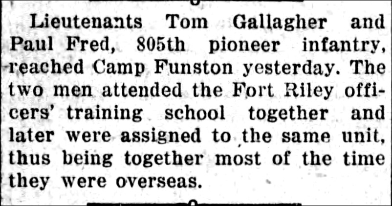 From Camp Upton, many of the 805th entrained for Camp Funston.