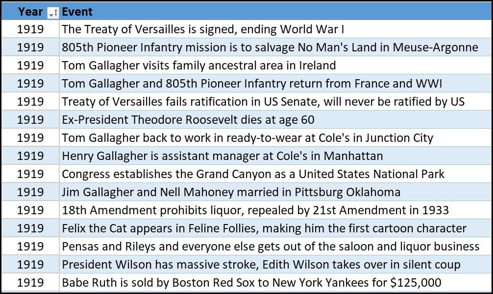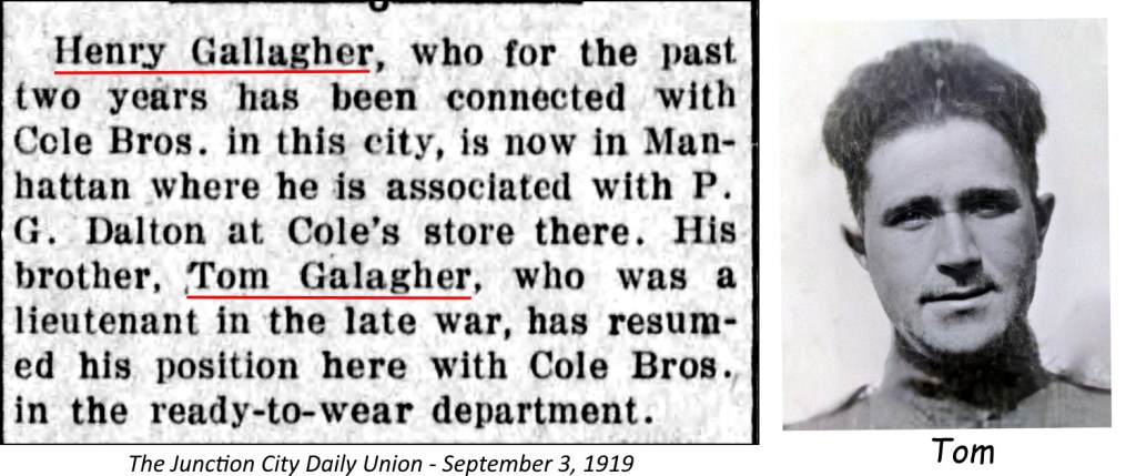 In summer 1919, Tom Gallagher was back in Junction City. He was out of the army. It was time to rejoin the work force and the social scene.