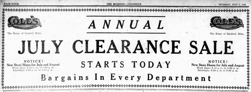The Cole’s stores were doing well. The economy was good, and people had money to spend. Cole’s had record sales. Tom Gallagher hosted continuous promotions, sales, and special events at the Sedalia store.