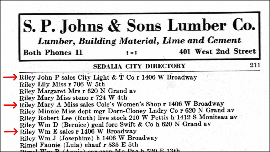 - Image – Polk’s Sedalia City Directory – 1925 – https://www.ancestry.com/discoveryui-content/view/632481934:2469