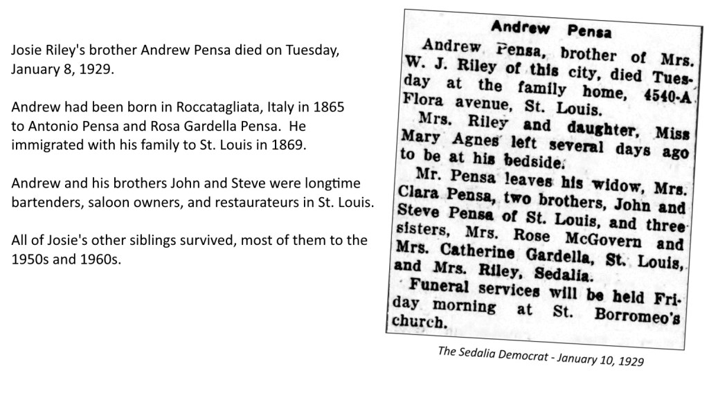 • Mary Agnes Riley was living at home at 1406 West Broadway, and working as a salesperson at Cole’s.