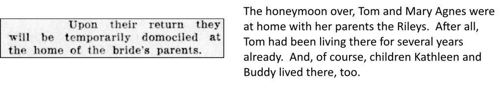 Mary Agnes lived in her parents’ home at 1406 West Broadway. Tom and his children Kathleen and Buddy lived there too.