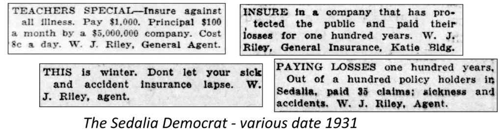 - Newspaper articles – The Sedalia Democrat – various dates – newspapers.com