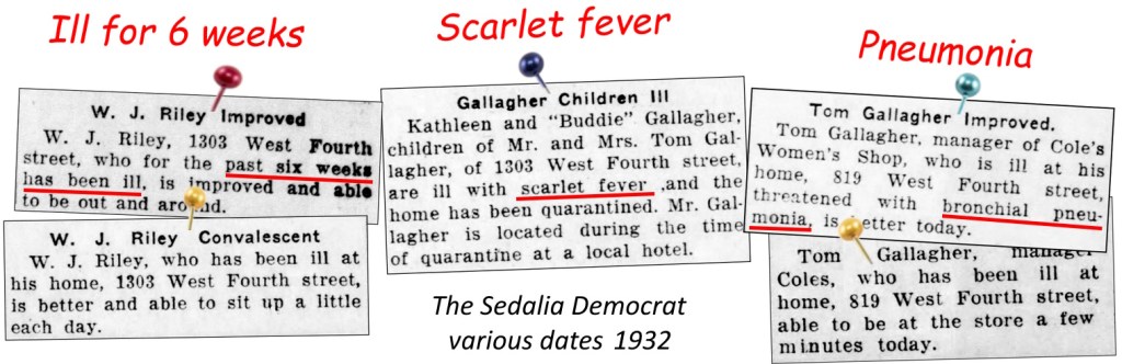 For whatever reason, the Rileys and Gallaghers had numerous bouts of illness in 1932.