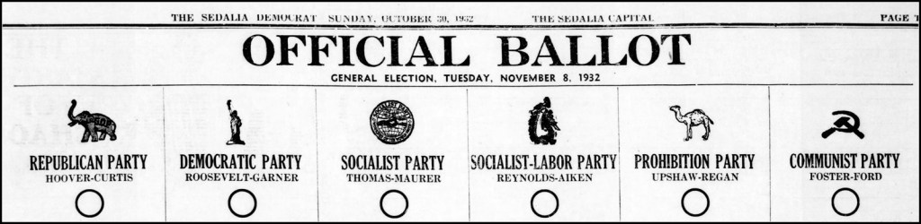 The 1932 US elections presented a choice among widely different political viewpoints. Americans blamed President Herbert Hoover for everything bad. Democratic candidate Franklin Roosevelt promised government solutions. And there were factional parties – Socialist, Prohibition, Communist, etc.