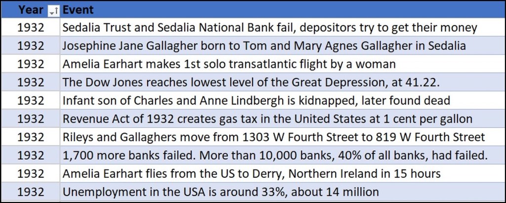 Let’s mention one more seismic topic – Prohibition. It had been a fact of American life since 1920. It had caused Will and Josie Riley to lose their liquor and beer distributorship business in 1920.