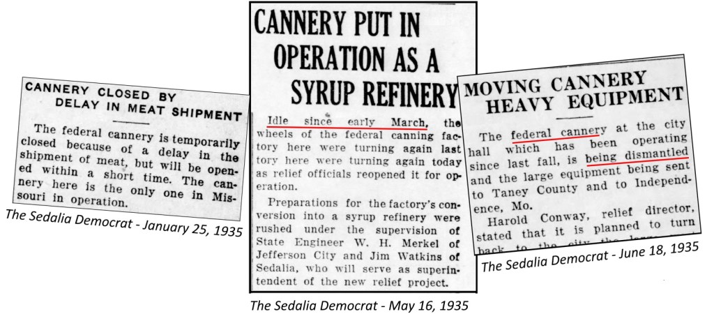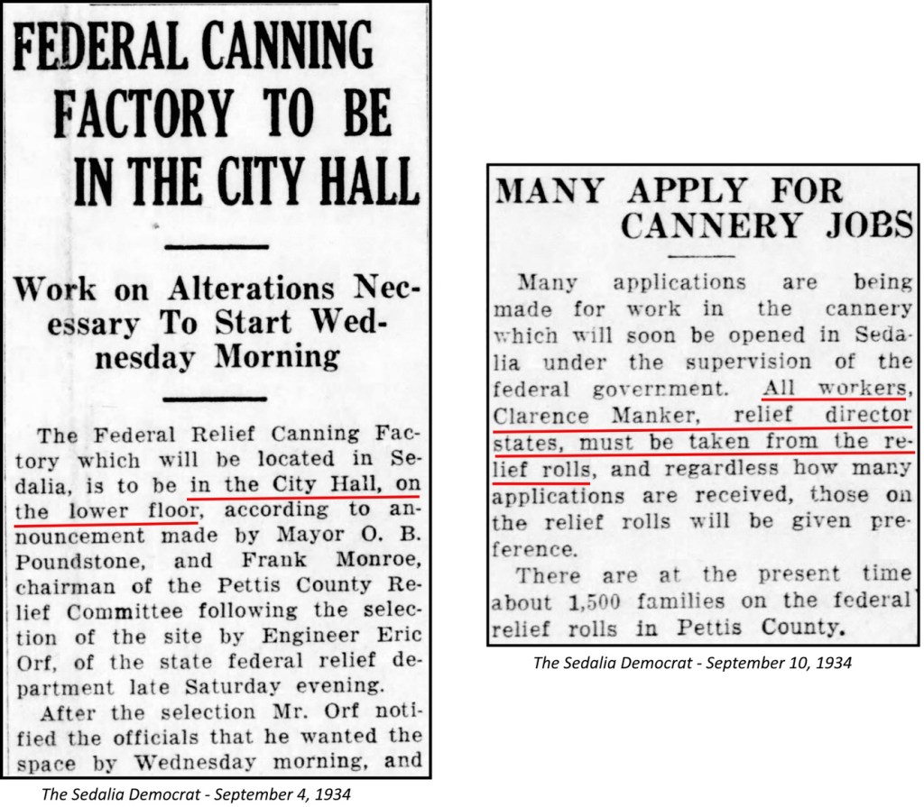 Proctor Carter’s statistics were part of a conversation with Sedalia and Pettis County leaders to implement more relief efforts. One major project was to start a meat canning factory, which would be supported by a cattle buying program.