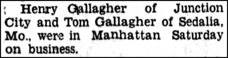 Next thing we know, Henry Gallagher of Junction City and Tom Gallagher of Sedalia are in Manhattan, Kansas, on business. What business? Why?