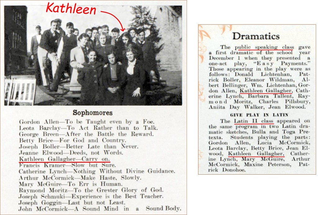 - Image – Kathleen Gallagher as sophomore at St. Xaviers – Xavierian Yearbook – 1939 – ancestry.com