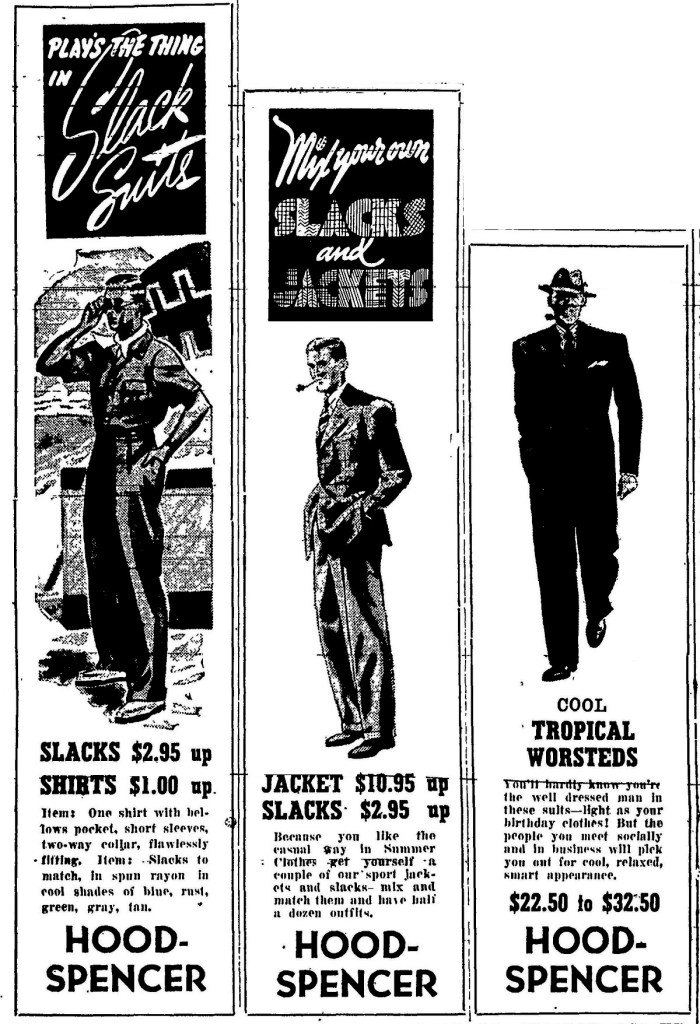 When W.A. Bingham had died in 1934, Dan Spencer and Will Hood had bought his clothing store, renaming it Hood-Spencer. It was in the darkest days of the Depression. Five years later in 1940, Hood-Spencer was still in business.