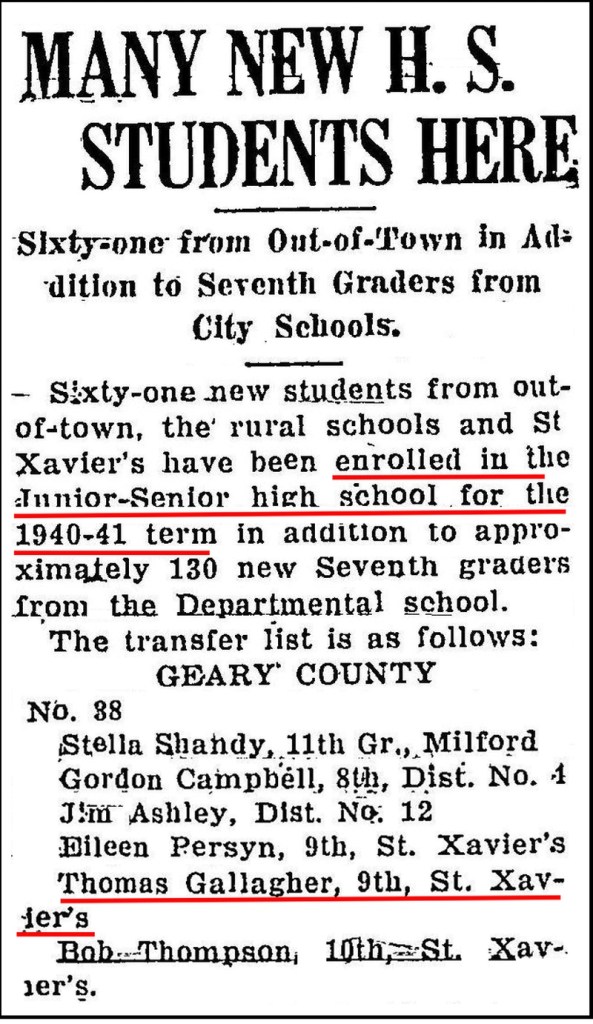 In the fall of 1940, Buddy Gallagher enrolled in Junction City High School instead of St. Xavier’s.