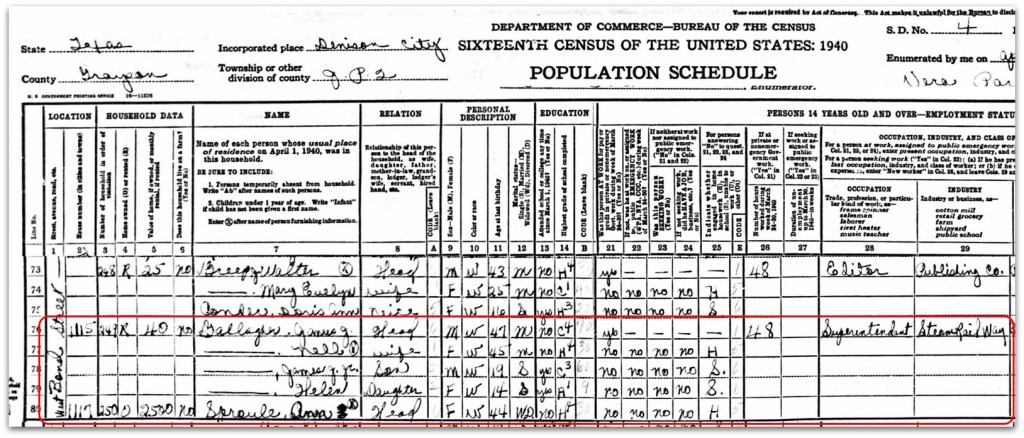 - Census – Tom and Mary Agnes Gallagher, Jim and Nell Gallagher, Dan and Marjorie Spencer – 1940 – ancestry.com