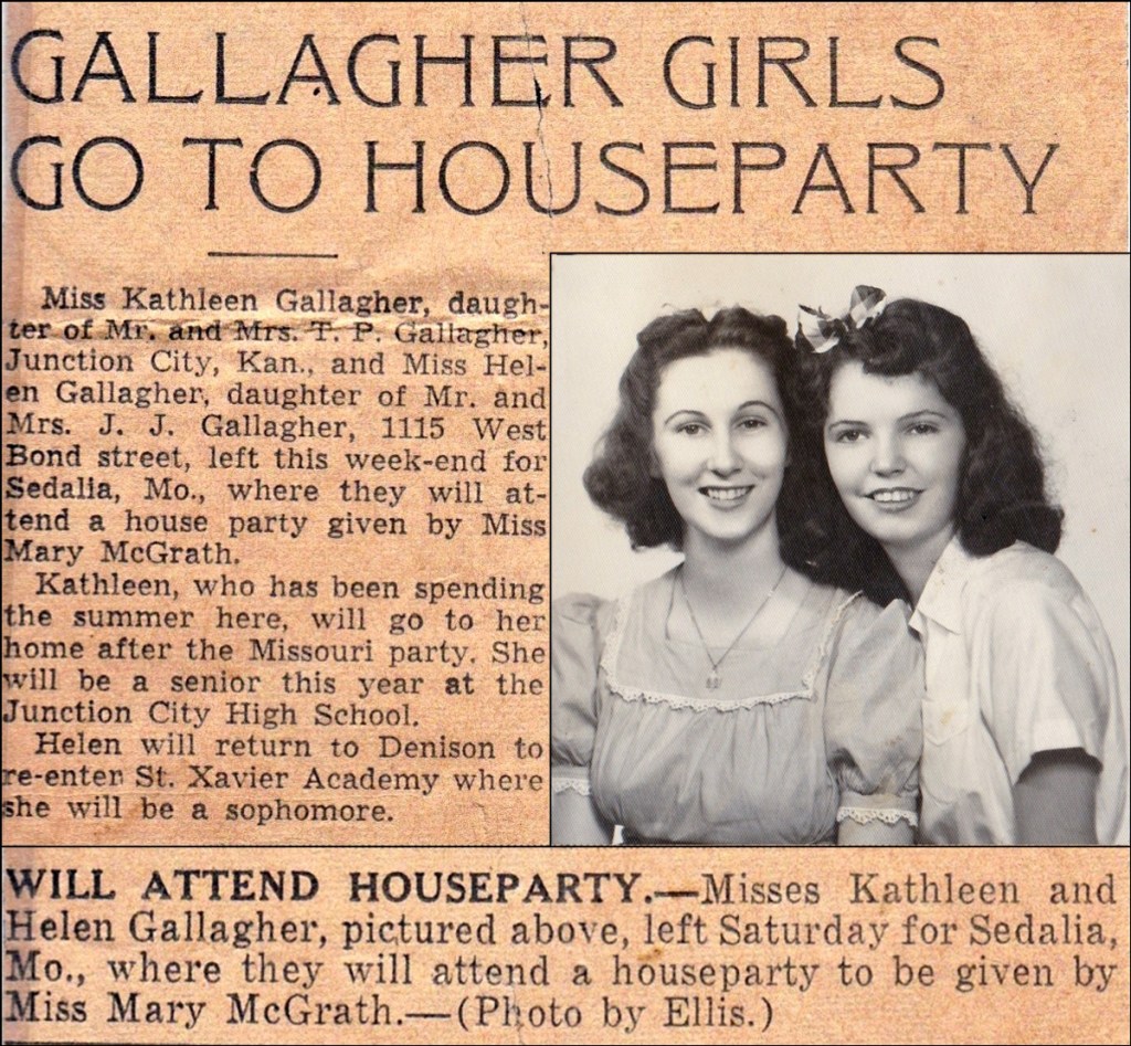 - Newspaper article – Gallagher Girls Go To House Party – Gallagher Family Documents – Catherine Teply Jarvis collection