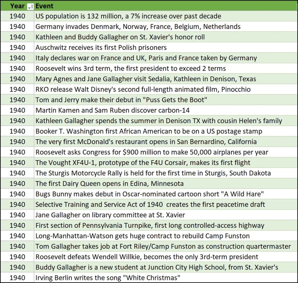 Christmas 1940 found the Gallagher family in good shape. Tom and Henry were both working at good jobs at Fort Riley.