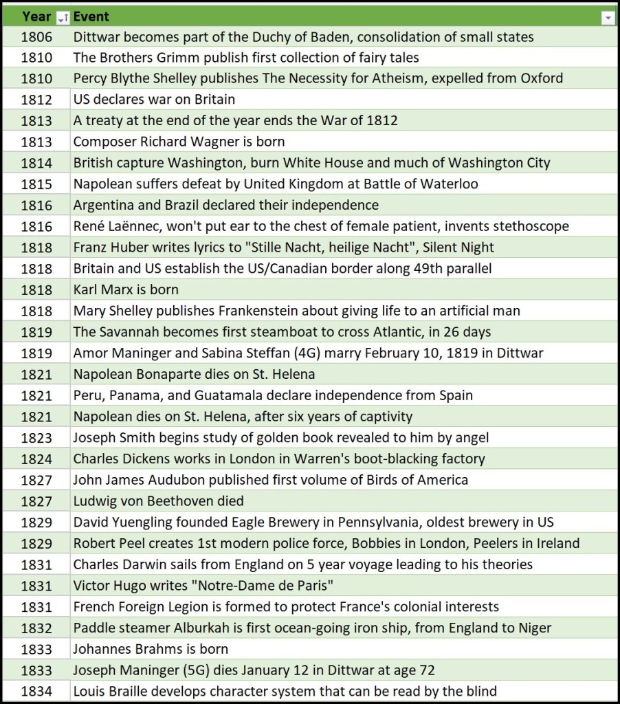 Amor Maninger and Sabina Steffan were married in St. Laurentius Church on Wednesday, February 10, 1819.