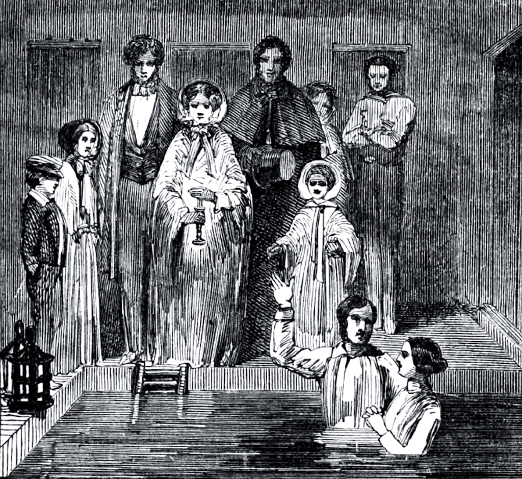 - Image – Drawing of a Mormon baptism ceremony, circa the 1850s – Frederick Hawkins Piercy (1830-1891), a Mormon artist – Wikimedia Commons – https://en.wikipedia.org/wiki/File:Mormon_baptism_circa_1850s.png