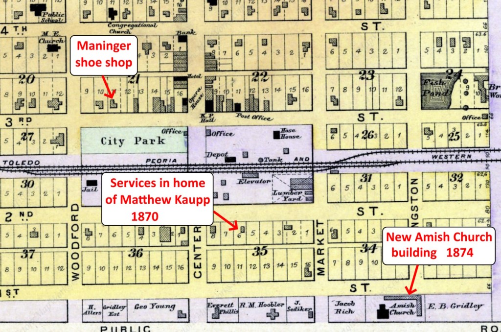 His location in the center of Woodford County put him in the heart of the Amish Mennonite communities that had immigrated in the 1830s through 1850s. Numerous of those families left their churches and began to follow the “New Amish” teachings.