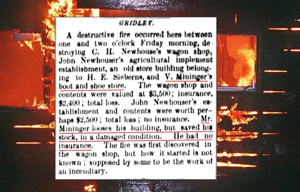 - News – Val Maninger will rebuild his shoe shop after fire – The Pantagraph – December 19, 1877 – newspapers.com