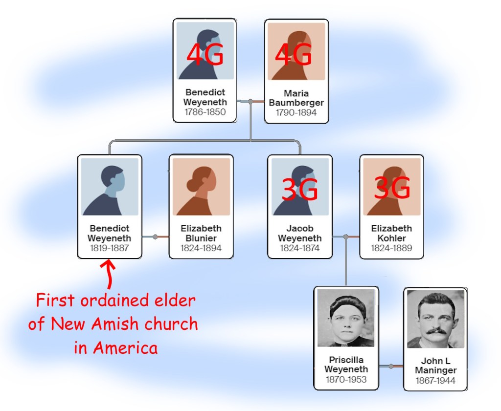 Our families descend from Benedict’s parents through Benedict’s brother Jacob Weyeneth.