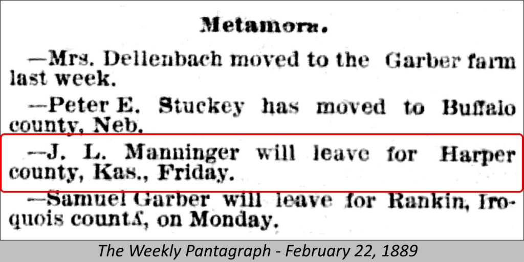 - News – John Maninger will leave Illinois for Kansas – The Weekly Pantagraph – February 22, 1889 – Newspapers.com