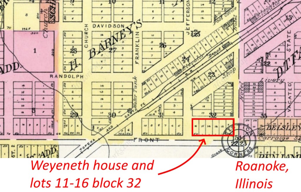 The Weyeneths bought a house and six lots in the town of Roanoke.