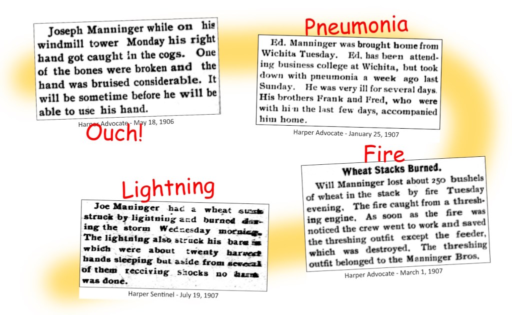 The news wasn’t always rosy. There were accidents, illnesses, deaths, and a host of other misfortunes. The Maninger families had their share. Here are a few.
