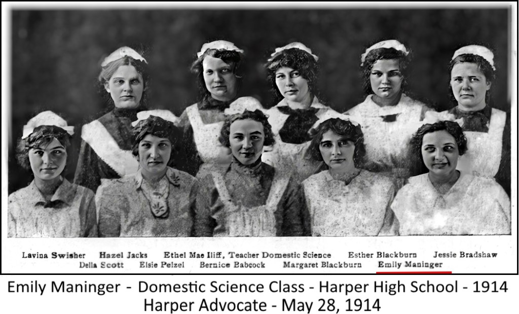 - News – Photo of Harper High School Domestic Science class – Harper Advocate – May 28, 1914 – newspapers.com