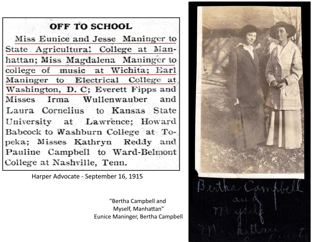Eunice and Jess and Charles Maninger attended Kansas State Agricultural College in Manhattan, Kansas.