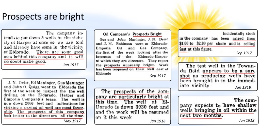 If you do, you’ll want to invest in the El Dorado – Harper – Emporia Oil and Gas Company. Do it now, while the stock is $1 per share.