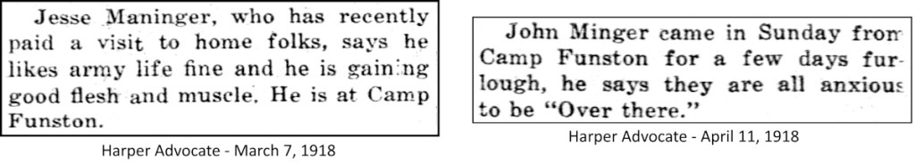 - News – Eunice and Magdalena visit Jess Maninger at Camp Funston – Harper Advocate – June 6, 1918 – newspapers.com