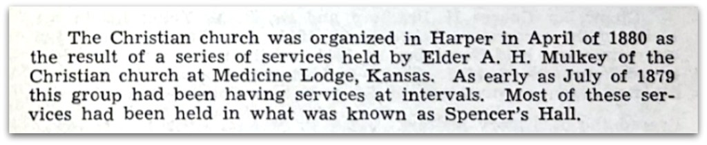 - Image – Formation of First Christian Church, Harper, Kansas – 1880 – A Historical Collection of Harper County Churches – Harper County Religious Heritage Committee – Anthony Public Library – Anthony, Kansas