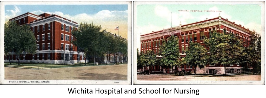 - Image – Wichita Hospital and School for Nursing – A view of the Wichita Hospital – in 1910 – https://www.ebay.com/itm/126095307420