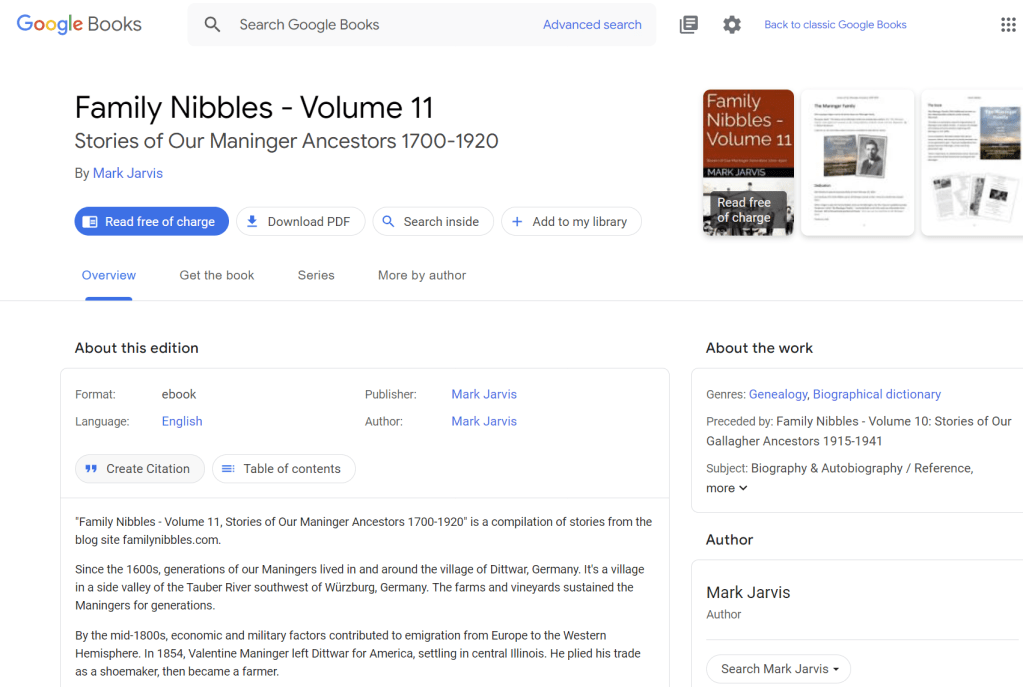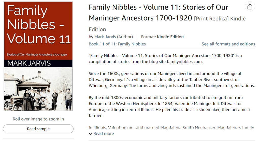 - Family Nibbles – Volume 11 Stories of Our Maninger Ancestors 1700-1920