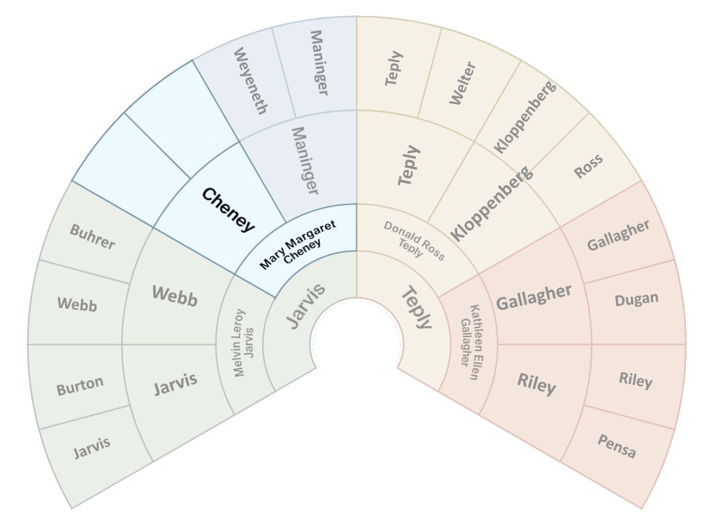 Continue readingWe’ve written stories about three of our ancestor family pairs – Jarvis/Webb, Teply/Kloppenberg, and Gallagher/Riley. We’re exploring one more family pair – Cheney and Maninger.
