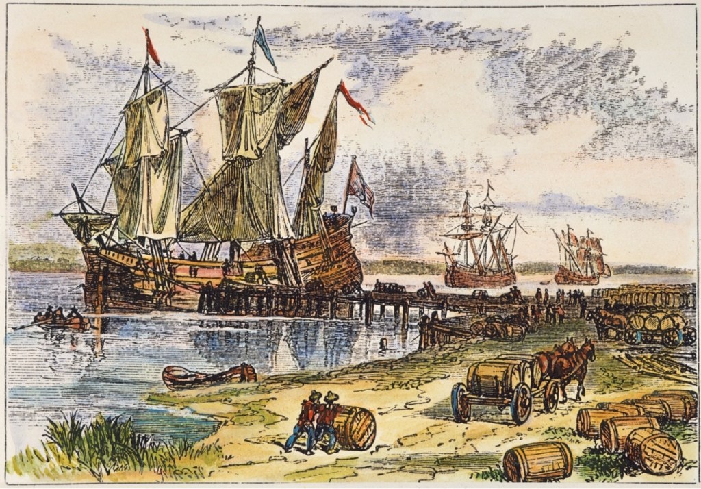 - Image – Artist Sydney King depicts settlers loading hogsheads of tobacco aboard a ship bound for England – National Park Service – https://www.nps.gov/jame/tobacco-and-the-atlantic-world-panel-four-of-the-chesapeake-bay-gateways-network-exhibit.htm