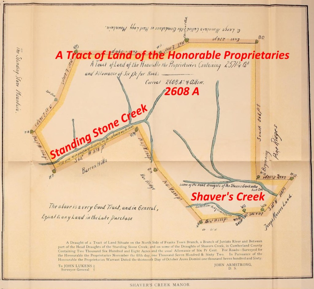 In 1760, the Penn Proprietaries set aside 2,608 acres at the headwaters of Shaver’s Creek. They designated it as Shaver’s Creek Manor.