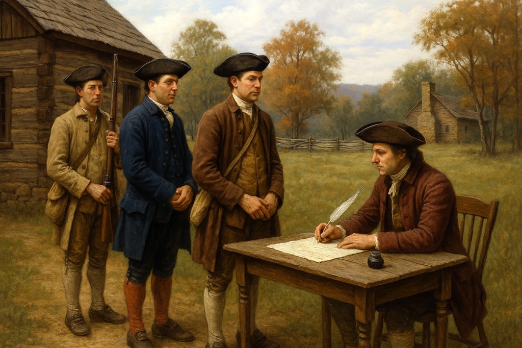 - Image – Men waiting to sign Oath of Allegiance – AI generated – Microsoft Co-Pilot