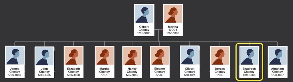 Shadrach Cheney, born October 9, 1793, is our 4th great-grandparent.