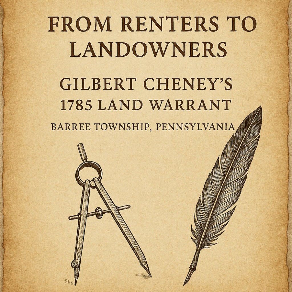 - Image – Warrant application – Gilbert Cheney – 1785 – Pennsylvania, Land Warrants and Applications, 1733-1952 – Ancestry.com – https://www.ancestry.com/search/collections/2350/records/222682?tid=4491114&pid=-257124079&ssrc=pt