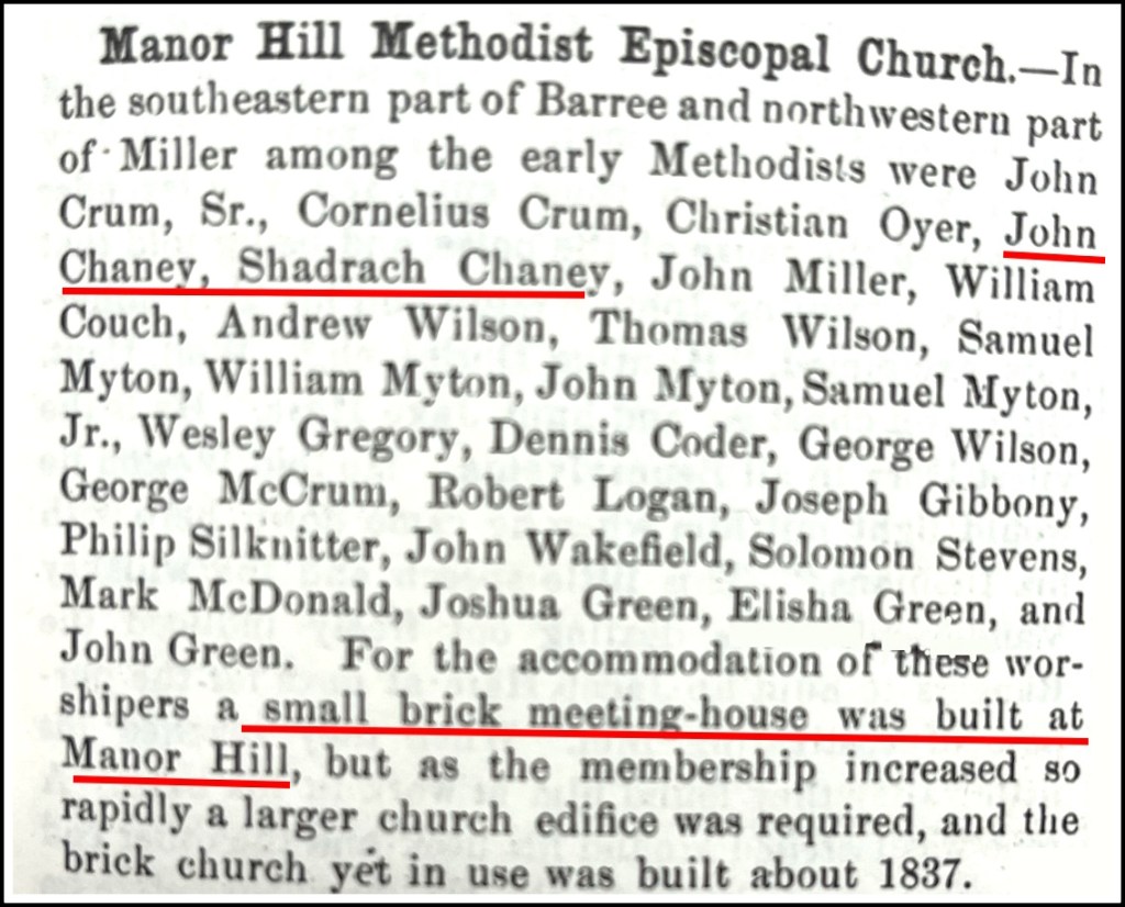 Among the early Methodists were John and Shadrach Cheney. We don’t know why John and Shadrach moved from their parents’ Presbyterian Church to the Methodist, but the calling must have been strong. Shadrach became a Methodist minister.