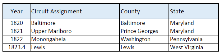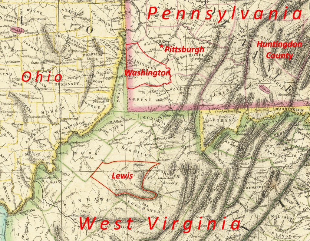 In 1823, Shadrach was assigned to Lewis County, Virginia. (Lewis County is in West Virginia today, as West Virginia was created from the state of Virginia in 1863.)