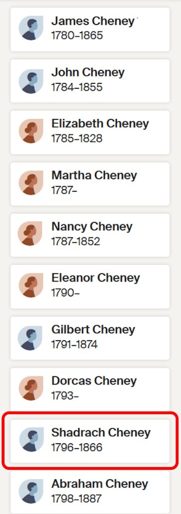 Shadrach Cheney is our 4th great-grandparent.