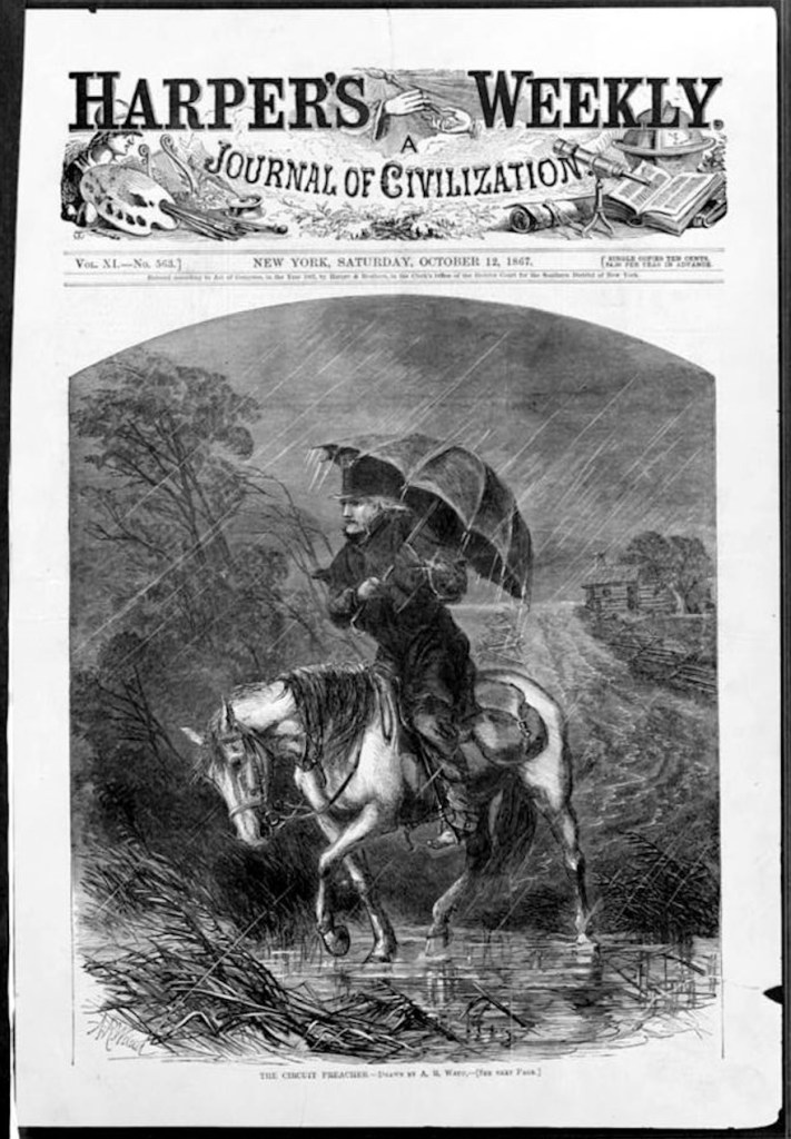 - Image – The Circuit Preacher – drawn by A.R. Waud – Harper’s Weekly – October 12, 1867 – Library of Congress – https://www.loc.gov/item/98506148/