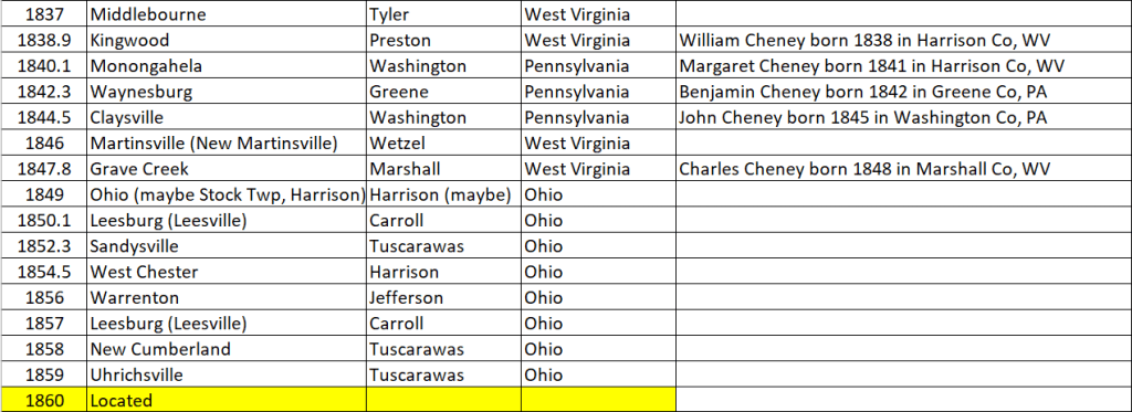 It’s 1837. Shadrach and Mary Squires are living in Salt Lick Bridge, (West) Virginia. They’re living near Mary’s parents Asa and Sarah Squires.