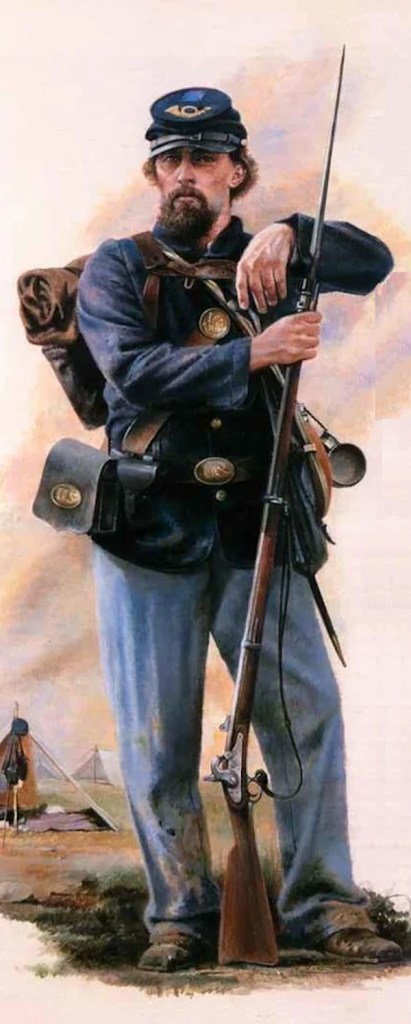 - Image – U.S. Infantry Private – Atlas to Accompany the Official Records of the Union and Confederate Armies – 1895 – Wikipedia – https://en.m.wikipedia.org/wiki/File:Union_Private_infantry_uniform.png#:~:text=Fran%C3%A7ais%20:%20Union%20private%20infantry%20uniform%2C%20from,American%20Civil%20War.%20Date%2C%201%20January%201895.