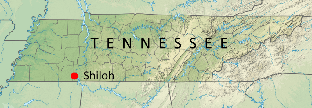 - Map – Shiloh and Tennessee – Wikimedia – https://en.wikipedia.org/wiki/File:USA_Tennessee_relief_location_map.svg