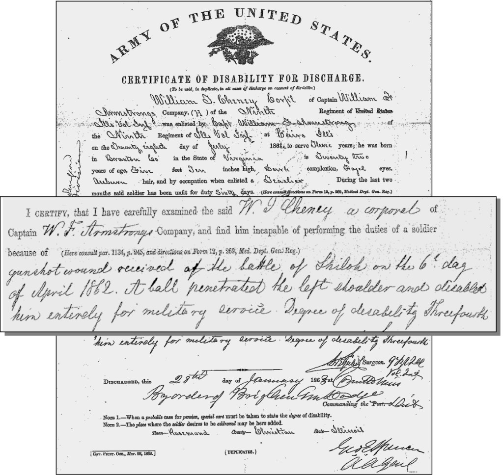 - Certificate of Disability for Discharge – William Cheney – 1863 – Military Service Records – National Archives and Records Administration