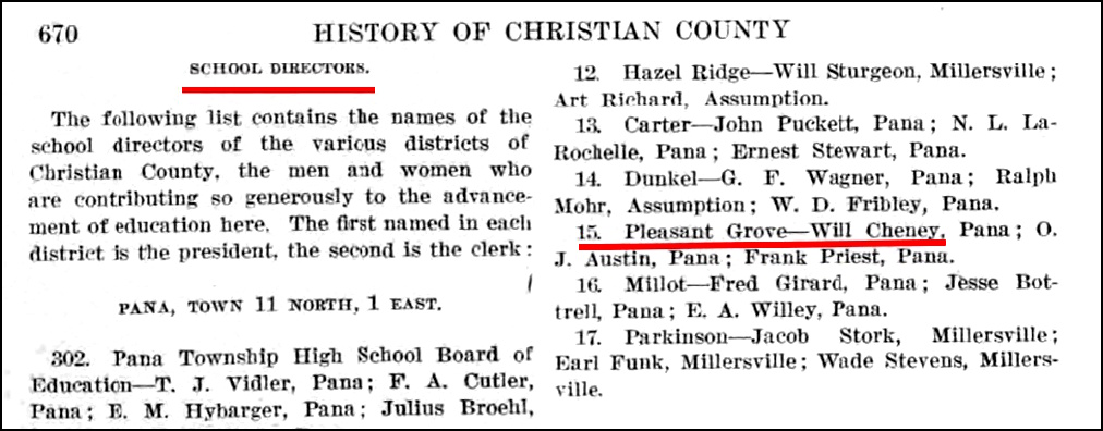 Throughout the 1860s, Cheney life was based in southern Christian County, in Greenwood and Rosamond Townships.