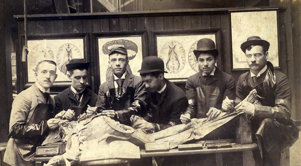 First year medical students in dissecting room – Univ of Penn. – 1890